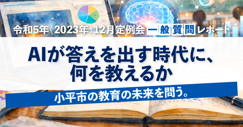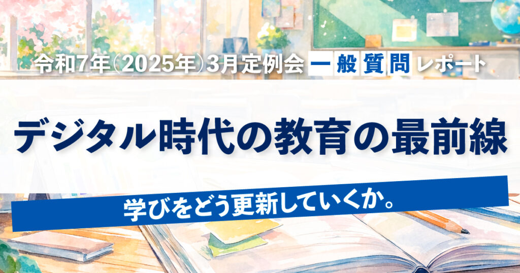 私は議会において「教育DXの推進」「AI時代の学びのあり方」「教員の働き方改革」について提言を重ね、教育でのAI活用やデジタル環境の改善など、着実に成果を積み上げてきました。