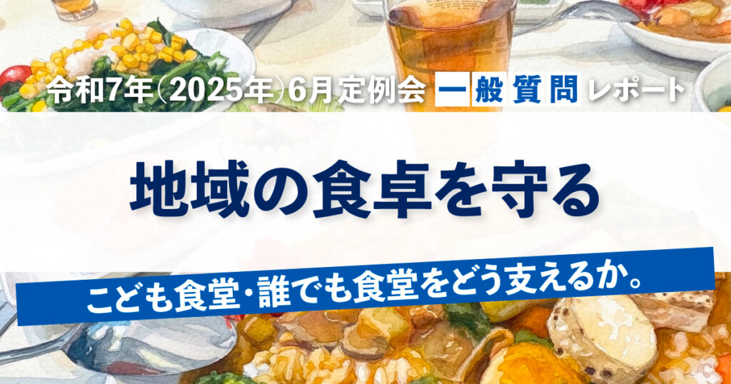 令和7年(2025年)6月定例会 一般質問「こども食堂や誰でも食堂の継続的な活動を支える支援施策について」レポート このレポートの要約 令和7年6月定例会では、小平市内で広がるこども食堂・誰でも食堂の活動を継続的に支えるための制度的支援を問いました。 こども食堂の役割と評価:食事の提供にとどまらず、地域の見守り・居場所づくり・...